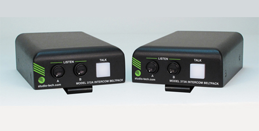 SKOKIE, IL, 22 MAY 2019 – Studio Technologies, manufacturer of high-quality audio, video, and fiber-optic solutions, introduces two new Dante®-enabled intercom beltpacks, the Model 372A and Model 373A. Both units, which combine a single talk channel with two channels of listen, are capable of supporting professional and consumer-grade, single- and dual-channel headsets with audio quality that far exceeds typical party-line intercom equipment. The Model 372A is intended to connect with headsets that use a 5-pin male XLR connector,