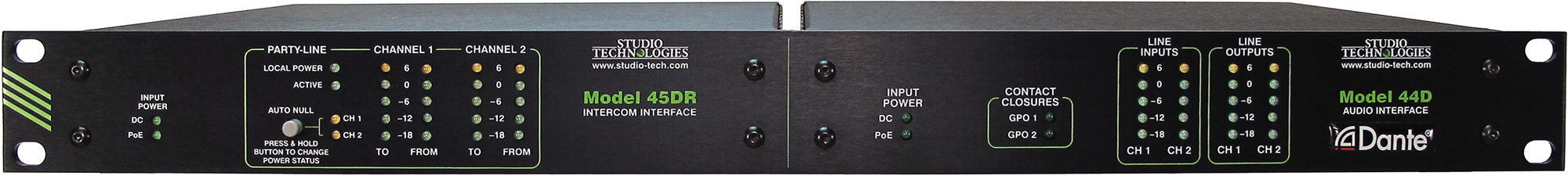 Rack-Mount Front Panel for One Model 45DR and One Model 44D Interface