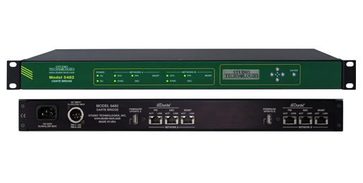 SKOKIE, IL, 10 NOVEMBER 2020 – Audio personnel have adopted the Dante® Audio-over-Ethernet (AoE) protocol as a “go to” method of interconnecting devices using standard Ethernet networks. Dante’s excellent audio quality, flexible features, and simple deployment has encouraged broad adoption among equipment manufacturers. Despite these strengths, interoperability between networks can prove challenging. Studio Technologies, manufacturer of high-quality audio, video, and fiber-optic solutions, announces a simple, yet high-performance solution with the Model 5482 Dante Bridge.