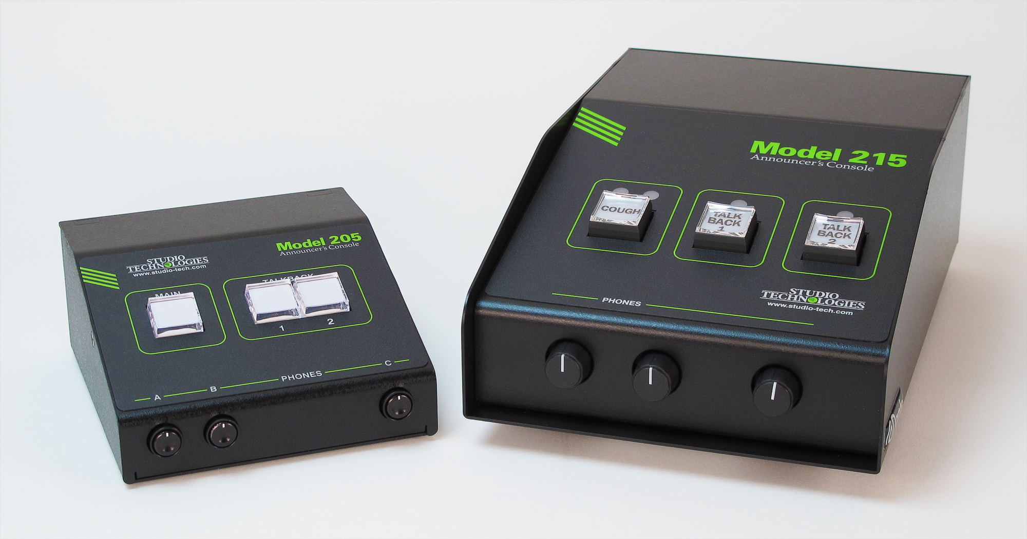 Red and green LEDs are associated with the main and talkback pushbutton switches. A configuration choice allows selection of the manner in which the LEDs will light under various operating conditions. This capability was specifically provided to assist users who have trouble observing the differences between colors, typically issues with red and green. "Color blindness" is not infrequently found in men and can make effective use of some electronic equipment difficult. In addition, the Model 205's ability to control the colors presented by the pushbuttons can be useful for international applications. Local preferences will often determine which color is associated with a function being "on" and which color is associated with a function being "off."