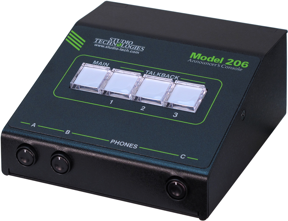 By providing the main audio signal in two forms, Dante digital audio and analog microphone level, the Model 206 makes integration into a wide range of on-air environments easy to accomplish. And with three talkback audio channels available as Dante transmitter (output) channels routing to inputs on a variety of devices, such as matrix intercom systems, audio consoles, and monitor loudspeaker systems, is simple and flexible.