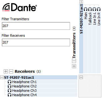 Application: applies to Dante main and talkback transmitter (output) channels and sidetone audio