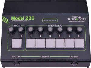 The Model 236's one main and six talkback pushbutton switches are illuminated to display their operating status. For performance confirmation an integrated sidetone function allows audio coming from the headset's microphone to be returned to the headset output.