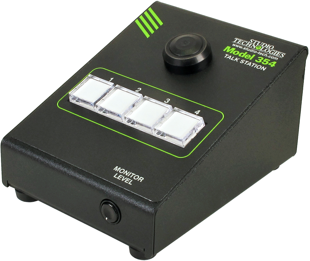 The Model 354 Talk Station is a unique product intended to support a variety of voice paging, background music, audio-file playback, broadcast talent cueing (IFB), and general audio applications. The unit supplies four independent "talk" channels that can be individually configured to match the needs of an application. A simple monitor section allows one of the four Dante® receiver (input) channels to be routed as desired to a connected amplifier or amplified speaker.