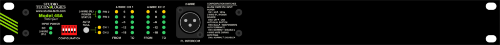 This rack-mount front panel is used for mounting one Model 45A Interface unit into one space (1U) of a 19-inch equipment rack.