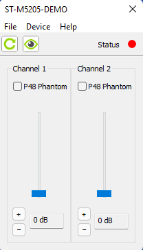 Remote Configuration Capability: preamplifier gain and P48 phantom power on/off status (uses STcontroller application)