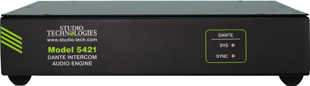 The Model 5421 Dante Intercom Audio Engine is a high-performance, cost-effective, and flexible solution for creating party-line (PL) intercom circuits when used with Dante®-compatible products. It's directly compatible with the Studio Technologies' range of 1-, 2-, and 4-channel intercom beltpacks. The Model 5421 can also prove valuable in other general-audio and broadcast-related mixing and interfacing applications. The unit is suitable for use in fixed and mobile broadcast facilities, post-production studios, commercial and educational theater environments, as well as language interpretation and entertainment applications.