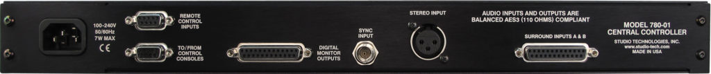 Connector—Surround Inputs: 25-pin female D-subminiature (DB-25F), AES59-2012 compliant