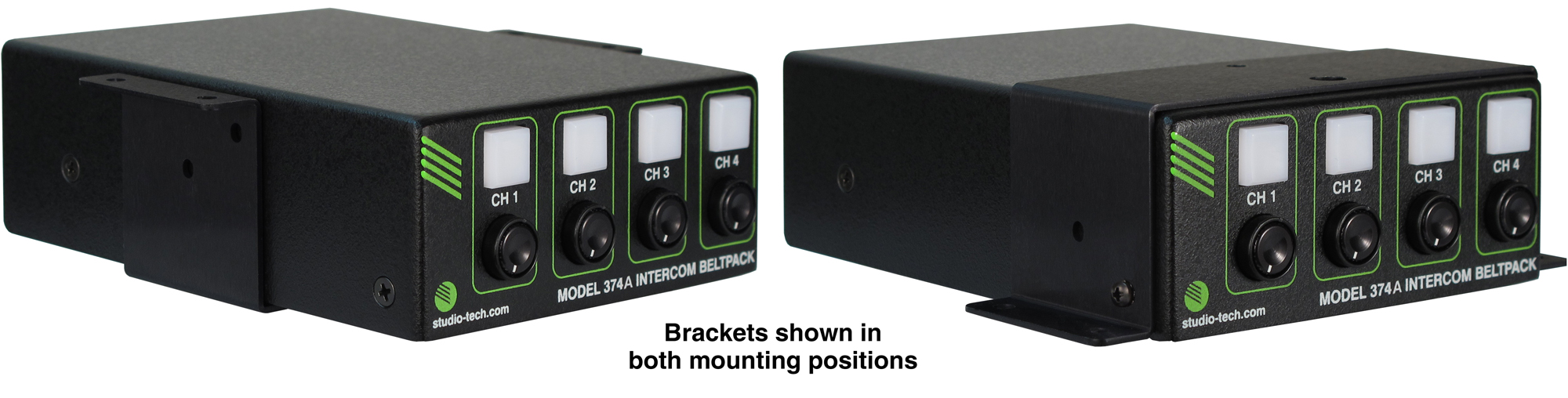 Mounting brackets and hardware for mounting one beltpack or alerting unit to a flat surface. Appropriate for wall, top or bottom of desk or broadcast set, or other appropriate surfaces. MBK-01 works with Models 370, 370A, 371, 371A, 374, and 374A Intercom Beltpacks. Kit includes black anodized aluminum bracket and three screws.