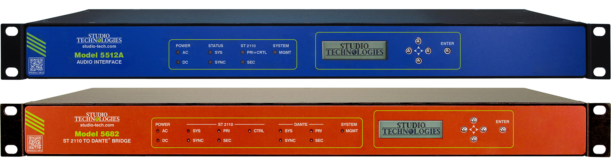 Several Studio Technologies Products, including the Model 5512A Audio Interface and Model 5682 ST 2110 to Dante Bridge