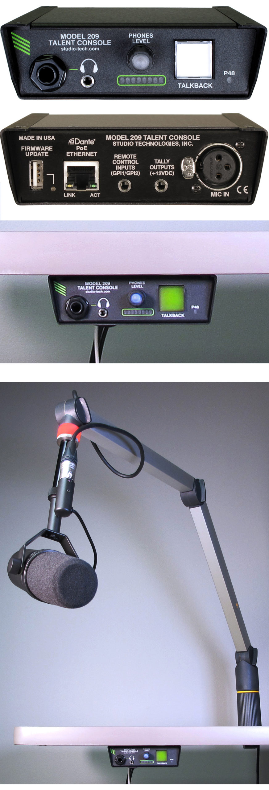 “While originally designed for podcasters, the Model 209 is truly an ‘all-Dante’ solution that can deliver excellent audio in many modern broadcast applications,” says Gordon Kapes, President of Studio Technologies. “It offers a range of configurable features, with a highlight being the unit’s compatibility with the m!ca microphone mounting products from Yellowtec. With just two signal interconnections, the Model 209 can directly control both of its LED status indicators.”