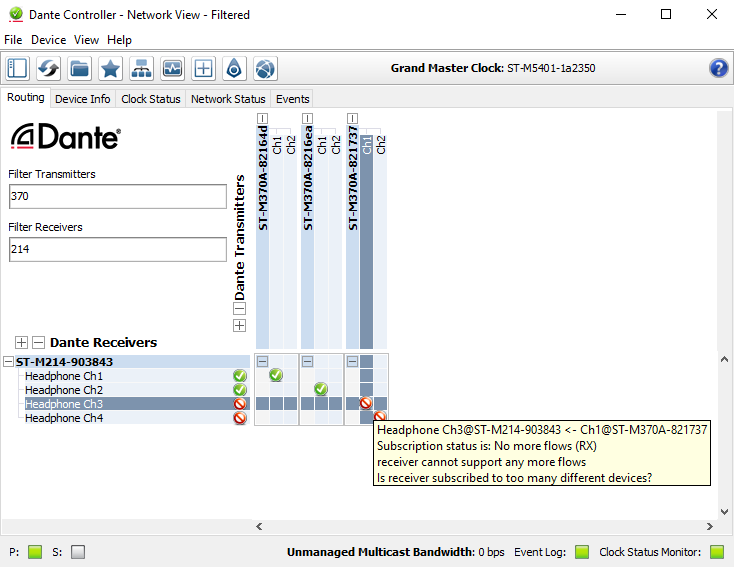 If you have had trouble making routes in Dante Controller due to a “No more flows” error it is important to understand the concept of Dante Flows.
