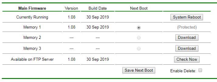 Once it is confirmed that the FTP server is running correctly download the firmware to one of the memory sectors.